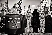 Dans le cadre de la lutte altermondialiste contre la fraude fiscale, la campagne Apple contre Attac est lancée en 2017 pour que la société Apple paie son amende de 13 milliards d’euros à laquelle l’a condamnée la Commission européenne pour évasion fiscale[22].