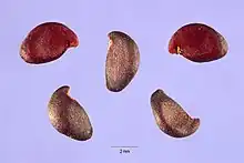 Chaque baie contient de 5 à 10 graines brunes. Leur germination demande des conditions climatiques préalables fraîches et humides (stratification)[1].