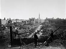 Strasbourg vient de subir le siège des troupes allemandes depuis le et la ville est bombardée par un pilonnage intensif de l'artillerie prussienne. En 46 jours de siège, plus de 200 000 obus sont tombés sur la cité[8]. Des quartiers entiers sont détruits et de nombreux monuments sont réduits en cendres. La cathédrale est touchée, la bibliothèque incendiée et le centre ville est dévasté. Le musée des Beaux-arts, le tribunal, l'hôtel de la préfecture, le théâtre, le palais de justice, le temple neuf, l'hôtel de l'état major, disparaissent. Les pertes civiles françaises sont de 261 tués et environ 1 100 blessés. Strasbourg dénombre 10 000 personnes sans abri.