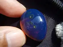 | Ambre dominicain, couleur bleue naturelle.40–25 Ma | |