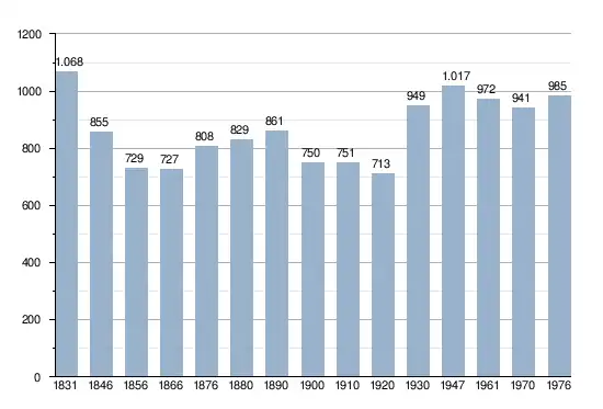 - Sources : INS, Rem. : 1831 jusqu'en 1970 = recensements, 1976 = nombre d'habitants au 31 décembre.
