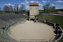 L'amphithéâtre d'Avenches fut bâti dans la ville romaine d'Aventicum en Germanie supérieure (aujourd'hui à Avenches en Suisse).
