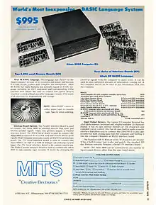 - (en) MITS, « Worlds Most Inexpensive BASIC language system », Radio-Electronics, vol. 46, no 8, , p. 1.