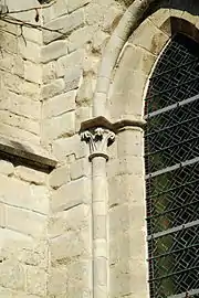 D'une élégance remarquable, le chevet se compose de deux travées et d'une abside à cinq pans[3]. Il est percé de neuf hautes fenêtres en forme de lancette ornées de fines colonnettes dont les chapiteaux, très détériorés, étaient ornés de feuilles d'acanthe[3],[5]. Ces chapiteaux portent une archivolte orné d'un tore[3] de la même épaisseur que les colonnettes.