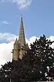 De l'ancienne église paroissiale, détruite au début du XXe siècle, ne subsiste qu'une tour-clocher datant de 1784. Le soubassement, jusqu'à la flèche, est une construction en pierre de taille, à base carrée, percée de baies en plein cintre à bandeaux unis sur deux faces, et flanquée sur les deux autres de tourelles d'escalier. La tour est couronnée par une galerie ajourée. La flèche octogonale est également en pierre.