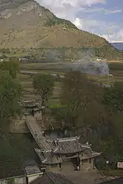 Lijiang fut longtemps une zone stratégique au carrefour de trois royaumes puissants[36] : le Tibet (qui l'occupa en 703 et apporta le bouddhisme tibétain), le royaume de Nanzhao (centré sur Dali, en 794) et l'Empire chinois (arrivée de Koubilaï Khan en 1253, et prise en main par l'administration centrale impériale et suppression du système des chefferies naxi, en 1723). Cette position permit à Lijiang de se développer comme un centre commercial majeur de l'Asie du Sud-Est à partir du Xe siècle. Les marchands Naxi et Tibétains ramenaient de leurs longues expéditions au Tibet, du musc, des matières médicinales, du cuir et des chevaux qu'ils revendaient à des marchands locaux (Naxi, Yi, Hui et Han) pour être redistribués dans l'arrière-pays. La population Naxi, dominante dans la région de Lijiang, descend des Qiang venus du plateau tibétain ; leur religion dongba est une variante du bön tibétain. Comme les Tibétains, ce sont des consommateurs de thé au beurre.