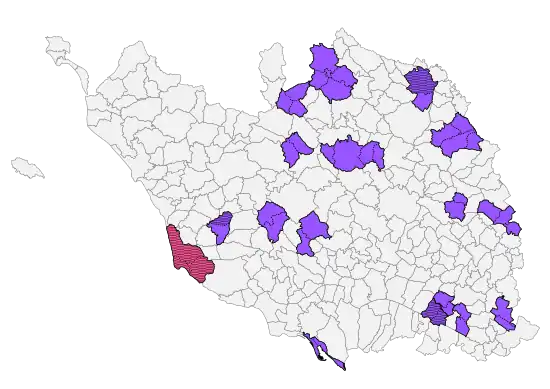 En , le territoire du département de la Vendée comportait 331 paroisses[3]. Alors que le département comptait 282 communes au , 255 communes forment son territoire à compter du .
