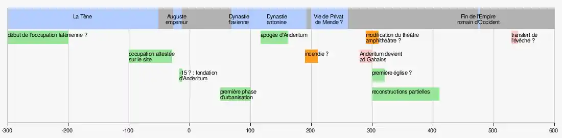 ■ Phase de construction ■ Phase de destruction ■ Histoire événementielle d'Anderitum/Javols