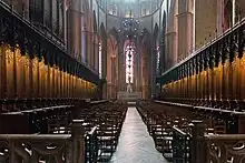 André Sulpice se rend à Mende en , accompagné de quelques ouvriers, parmi lesquels Jehan Pessamen. Les chanoines lui donnent à prix fait les boiseries du chœur de la cathédrale. Le contrat est passé chez le notaire Jalvin. À cause d'un retard dû au chapitre, il s'est plaint au chapitre « attendu que ce retard lui causait un très grand préjudice, obligé d'entretenir plusieurs ouvriers ». Le travail des stalles ont duré cinq ans. Les ouvriers étaient logés dans des maisons appelées le Marchastel, à l'ouest de la cathédrale.
