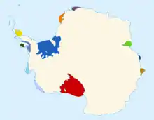 L'Antarctique (prononcé /ɑ̃.taʁk.tik/, ou aussi /ɑ̃.taʁ.tik/ ), parfois appelé « le Continent Austral » ou « le Continent Blanc »[alpha 2], est le continent le plus méridional de la Terre. Situé autour du pôle Sud, il est entouré des mers de Ross et de Weddell et, suivant les classifications, des océans Atlantique, Indien et Pacifique ou du seul océan Austral. Il forme le cœur de la région antarctique qui inclut également les parties émergées du plateau des Kerguelen ainsi que d'autres territoires insulaires de la plaque antarctique plus ou moins proches. L'ensemble de ces territoires, qui partagent des caractéristiques écologiques communes, constitue l'écozone antarctique.