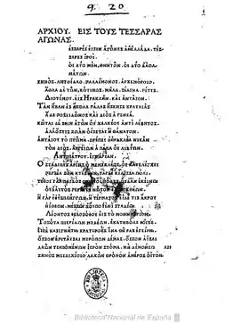 - Robert Aubreton (trad.), avec la collab. de Félix Buffière, Anthologie grecque II : Anthologie de Planude XIII, Les Belles Lettres, Paris, 1980.