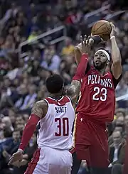 Le , il inscrit 50 points, prend 16 rebonds et réalise 5 passes décisives, 7 interceptions et 4 contres face aux Nuggets de Denver, il échoue à un contre du five-by-five. Il s'agit de la première performance à plus de 50 points, 15 rebonds, 5 passes décisives et 5 interceptions dans l’histoire de la NBA depuis que les interceptions sont devenus une statistique officiellement enregistrée au cours de la saison 1973-1974[26]. Deux jours plus tard, il marque 45 points et prend 17 rebonds contre les Warriors de Golden State, devenant le premier joueur de l'histoire des Pelicans à inscrire plus de 40 points sur deux matchs consécutifs[27].