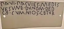 Divers témoignages épigraphiques ont également été retrouvés sur le site ou dans ses environs immédiats, notamment certains en langue marse (une variante de l'ombrien) dont le Bronzo di Antino (it)[3] avec une dédicace à la divinité Vesuna.