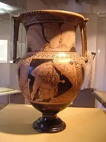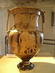 Vase de Thislovely du maître d'Hésione, Hercules enlace Hésione qui montre sa reconnaissance pour son sauvetage