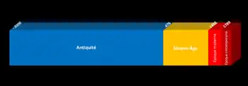 De la même manière, dans l'historiographie occidentale, l'Antiquité précède le Moyen Âge qui précède lui-même l'Époque moderne. Cette périodisation n'est pas forcément adaptée hors du monde occidental et vouloir l'appliquer nolens volens n'a pas grand sens.