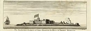 À la fin de l'année 1719, il reprend le fort Saint Jacques[41], sur l'île James sur le fleuve Gambie[22]. Il avait été mis à sac puis abandonné par le pirate Howell Davis plus tôt dans l'année[42]. Davis, s'étant fait passer pour un corsaire afin de dupper le commandant du fort, est convié à un dîner de bienvenue. Il se révèle, capture le fort et demande une rançon. Il obtient la somme de 2000 livres[43], avant de poursuivre ses actions à Principe où il est tué dans une embuscade.