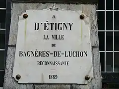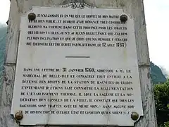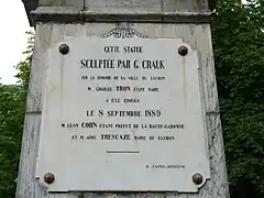 - Luchon : Statue d'Étigny et les plaques commémoratives sur les faces du socle