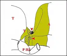 Au moins chez les Argyrodes, il s’associe aux organes lyriformes du pédicelle ou pédicule (Lopez, 1996) constituant avec ces derniers un complexe anatomo-fonctionnel sus-pédiculaire présumé stato-récepteur (Lopez, 1994a ; Lopez, 1994b)