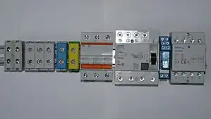 Le terme Appareillage modulaire pour tableau électrique désigne l'ensemble des appareillages électriques basse tension prévus pour être supportés par un Rail DIN à l'intérieur d'un tableau électrique prévu à cet effet et garantissant éventuellement la protection des utilisateurs contre les chocs électriques..
