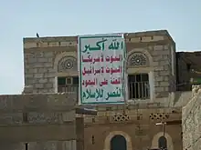 Le slogan du mouvement Houthi, un groupe politique et militant islamiste établi au Yémen, dit : « Dieu est le plus grand, Mort à l'Amérique, Mort à Israël, Malédiction sur les Juifs, Victoire à l’Islam »[31],[32] » Pendant la guerre Israël-Hamas de 2023-24, le mouvement houthi a déclaré son intention de continuer à attaquer l'État hébreu jusqu'à ce qu'il parvienne à la « disparition d'Israël »[33].