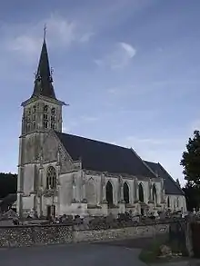 Classé MH (1862)[24]. Dédiée à saint André, cette église fut commencée en 1518 (par Jean IV d'Annebault)[25] et achevée par les soins des deux illustres frères d'Annebault. L'église est construite entièrement de pierre. Leurs armes reproduites dans différents endroits attestent suffisamment qu'ils avaient dû contribuer pour une large part dans les réparations[pas clair]. Le chœur de l'église a d'abord été construit au XIVe siècle, et après, la nef et la tour au XVIe siècle. L'un des éléments les plus intéressants de cette construction semble être une corniche extraordinairement ouvragée d'animaux et fruits qui fait, sous le toit, le tour de la nef.
