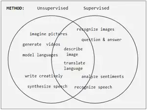 Les tâches du réseau de neurones sont souvent classées comme discriminatives (reconnaissance) ou génératives (imagination). Les tâches discriminatives utilisent souvent (mais pas toujours) des méthodes supervisées et les tâches génératives utilisent des méthodes non supervisées (voir diagramme de Venn); cependant, la séparation est très floue. Par exemple, la reconnaissance d'objets favorise l'apprentissage supervisé, mais l'apprentissage non supervisé peut également regrouper des objets en groupes. De plus, au fur et à mesure que des progrès, certaines tâches utilisent les deux méthodes, et certaines tâches oscillent de l'une à l'autre. Par exemple, la reconnaissance d'images a commencé comme étant fortement supervisée, mais est devenue hybride en employant un pré-entrainement non supervisée, puis est revenue à la supervision avec l'avènement de l'abandon, de ReLU et des taux d'apprentissage adaptatifs.
