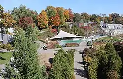 Ce panorama sert de décor aux jardins entourant les bâtiments principaux. On a voulu y reproduire à plus petite échelle des éléments hydrographiques québécois : rivière, cascade, étang, lac. Les rives sont plantées de plantes et de fleurs indigènes à la province. La rivière entre et se déverse dans l'atrium du bâtiment principal.