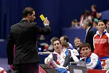 L'arbitre peut être assisté de 4 assesseurs ou juges de main (2 de chaque côté). De plus, dans certaines compétitions, une assistance vidéo peut être disponible.