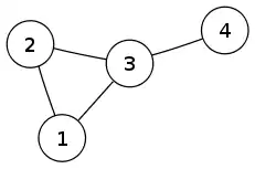 Dans le graphe ci-dessous, l'arbre formé des arêtes 1–3, 2–3 et 3–4 est un arbre de Trémaux lorsqu'il est enraciné au sommet 1 ou au sommet 2 : chaque arête du graphe appartient à l'arbre sauf l'arête 1–2 qui (pour ce choix de racine) relie une paire ancêtre-descendant.