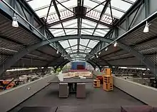 Le système statique de l'arc à trois articulations, développé à l'origine pour les structures de ponts, a été transféré pour la première fois à la construction de bâtiments en 1865 par Johann Wilhelm Schwedler (de) avec la construction du Hammerwerk II pour la Bochumer Verein für Bergbau und Gußstahlfabrikation auf den Hochbau[2]. Dès 1866/67, Schwedler utilisa la même construction, légèrement modifiée, pour la toiture du grand hall de la gare Ostbahn à Berlin et probablement en 1870/71 pour une cornue de l'Imperial Continental Gas Association à Berlin. Contrairement au Bochum Hammerwerk, qui est un monument classé, les deux derniers bâtiments mentionnés ne sont plus conservés. Le hall des quais de la gare centrale de Francfort, également construit par Schwedler entre 1885 et 1887, a été conservé au moins en partie.