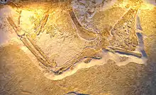 • Les ailes pourvues de trois doigts griffus, chacun bien séparé des autres [F] (contrairement aux oiseaux actuels chez qui ils sont partiellement soudés).