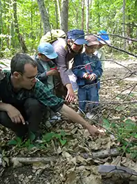 - - des ateliers ludiques : plaques en relief (empreintes animaux, feuilles arbres), bornes informatiques (sons, contes, vidéos), affût (film animalier), meubles mystères (toucher, reconnaissance d'essences, sol forestier, papillons)...