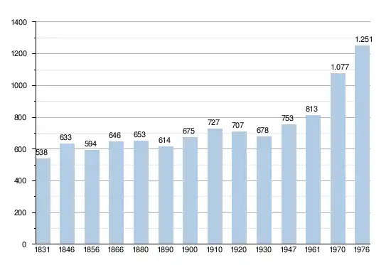 - Sources:INS, Rem:1831 jusqu'en 1970=recensements, 1976= nombre d'habitants au 31 décembre