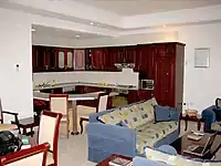 L'enfilade antichambres/chambre peut être prolongée par les appartements (ce lieu où l'on se tient « à part »), ces pièces où se forme le sentiment de l'intimité et du privé. Ceux-ci, typiquement, sont constitués d'un boudoir (si ce sont les appartements de madame) ou d'une étude, d'une garde-robe où l'on s'habille, de lieux d'aisance où l'on se soulage et se lave. La salle de bains n'apparaît que plus tard, au XIXe siècle, avec le progrès industriel qui permet de produire canalisations et chauffe-eau.