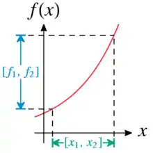 En général, il est difficile de trouver une description simple de la sortie pour un large spectre de fonctions. En revanche, il est quand même possible d'étendre les fonctions à l'arithmétique d'intervalle. Si est une fonction d'un vecteur réel donnant un réel, alors est appelé l'extension à un intervalle de f si