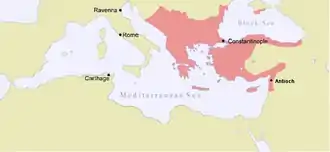 Si l'Empire byzantin opte principalement pour une posture défensive, des guerres offensives sont aussi menées, en particulier sous Justinien. C'est le cas d'abord contre les Vandales qui occupent l'Afrique du Nord autour de Carthage. Après une expédition désastreuse en 468, une longue paix règne que brise l'envoi du corps expéditionnaire mené par Bélisaire en 533. Il ne faut que quelques mois au général byzantin pour triompher à deux reprises des Vandales, dont le royaume disparaît rapidement, laissant place à une longue campagne de pacification face aux Maures, menée notamment par Jean Troglita. Par la suite, cette province jouit d'une paix plutôt solide pendant un siècle.