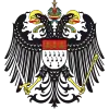 De gueules à l'aigle d'argent, au centre un écu d'argent à la croix de sable  |