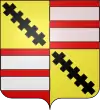 Écartelé, aux 1 et 4 d'or, une croix ancrée de gueules ; aux 2 et 3 d'argent, une hie de sable posée en bande accompagnée de six roses de gueules ordonnées en orle  |
