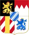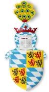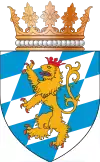 fuselé en bande d'azur et d'argent (Wittelsbach), sur-le-tout au lion d'or, armé, lampassé et couronné de gueules.