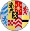 écartelé en 1 et 4 de sable, au lion d'or, armé, lampassé et couronné de gueules (Palatin) et en 2 et 3 fuselé en bande d'azur et d'argent (Bavière), sur le tout de gueules à la couronne de Charlemagne d'or (prince-électeur et archi-trésorier d'Empire)