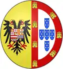 écartelé, au I et IV d'argent, à cinq écussons d'azur, posés en croix, les deux de flanc mis de côté, chaque écusson chargé de cinq besants du champ, posés en sautoir, à la bordure de gueules, chargée de douze châteaux d'or, donjonnés de trois tours, ouverts et ajourés d'azur, aux quatre fleurs de lys de sinople, brisé d'un lambel d'argent, chaque pendant chargé de trois mouchetures d'hermine (qui est d'Aviz-Coimbra), et au II et III d'or à 4 pals de gueules (qui est d'Aragon). |