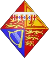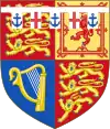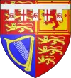 Écartelé : I et IV de gueules à trois léopards d'or armés et lampassés d'azur (d'Angleterre) ; II d'or, au lion de gueules, au double trescheur fleuronné et contre-fleuronné du même (d'Écosse) ; III d'azur, à la harpe d'or, cordée d'argent (d'Irlande) ; au lambel à trois pendants d'argent brochant, celui en cœur chargé d'un chardon au naturel, ceux à dextre et sénestre chargés d'une rose Tudor[13]. |