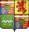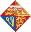 Écartelé : I et IV de gueules à trois léopards d'or armés et lampassés d'azur (d'Angleterre) ; II d'or, au lion de gueules, au double trescheur fleuronné et contre-fleuronné du même (d'Écosse) ; III d'azur, à la harpe d'or, cordée d'argent (d'Irlande) ; au lambel à cinq pendants d'argent brochant, celui en cœur chargé d'une croix de gueules (dite « de Saint Georges »), ceux à dextre et sénestre chargés d'un cœur de gueules, les autres chargés d'une ancre d'azur[13]. Écartelé : I et IV de gueules à trois léopards d'or armés et lampassés d'azur (d'Angleterre) ; II d'or, au lion de gueules, au double trescheur fleuronné et contre-fleuronné du même (d'Écosse) ; III d'azur, à la harpe d'or, cordée d'argent (d'Irlande) ; au lambel à cinq pendants d'argent brochant, ceux en cœur, à dextre et sénestre chargés d'une croix de gueules (dite de Saint Georges), les autres chargés d'une ancre d'azur[13]. |