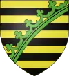 Burelé de dix pièces de sable et d'or au crancelin de sinople, brochant en bande sur le tout[21]. |