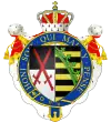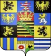 Burelé de sable et d'or, au crancelin de sinople, brochant en bande sur le tout[1],[4]. Dignité d'archi-maréchal du Saint-Empire romain germanique, charge attachée à l'Électorat de Saxe : Coupé de sable et d'argent au deux épées de gueules posées en sautoir. |