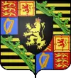 Écartelé : I et IV de gueules à trois léopards d'or armés et lampassés d'azur (d'Angleterre) ; II d'or, au lion de gueules, au double trescheur fleuronné et contre-fleuronné du même (d'Écosse) ; III d'azur, à la harpe d'or, cordée d'argent (d'Irlande) ; au lambel à trois pendants d'argent brochant, celui en cœur chargé d'un cœur de gueules (dite de Saint Georges), les deux autres chargés d'une rose de gueules ; sur-le-tout burelé de dix pièces de sable et d'or au crancelin de sinople, brochant en bande sur le tout (de Saxe)[13]. |