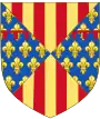 Écartelé en 1 et 4, d'or à quatre pals de gueules et en 2 et 3 semé de fleurs de lys d'or; un lambel de gueules, brochant sur la partition[19]. | ||