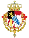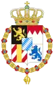 parti en I, écartelé au 1 de sable, au lion d'or, armé et lampassé et couronné de gueules (qui est du comté palatin du Rhin), au 2 Emanché de gueules et d'argent de trois pièces (qui est de Franconie) au 3 bandé d'argent et de gueules au pal d'or brochant sur le tout (qui est de Burgovie), au 4 d'argent au lion d'azur armé lampassé et couronné d'or (qui est de Veldenz) et sur le tout fuselé en bande d'azur et d'argent (qui est de Bavière) ; en II écartelé en 1 et 4, de gueules au château d'or ouvert et ajouré d'azur et en 2 et 3 d'argent au lion de gueules armé, lampassé et couronné d'or, enté en pointe du sur-le-tout d'argent à une pomme grenade de gueules, tigée et feuilleté de sinople sur-le-tout d'azur à trois fleurs de lys d'or à la bordure de gueules, après 1883, d'azur à trois fleurs de lys d'or[Information douteuse]. |
