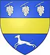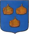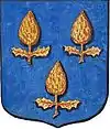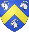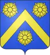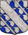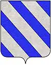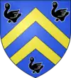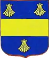 D'azur semé de besants d'or, au lion d'argent, la queue contournée, armé de gueules et lampassé d'or. |