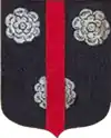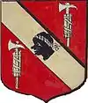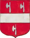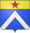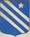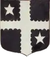 D'argent au lion de sable, la queue fourchée passée en sautoir, chargé d'une étoile d'or sur l'épaule. |